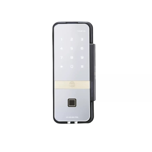 耶魯YDG413A-玻璃門專用電子輔助鎖,同時支援指紋,密碼及藍芽/遠端開鎖。