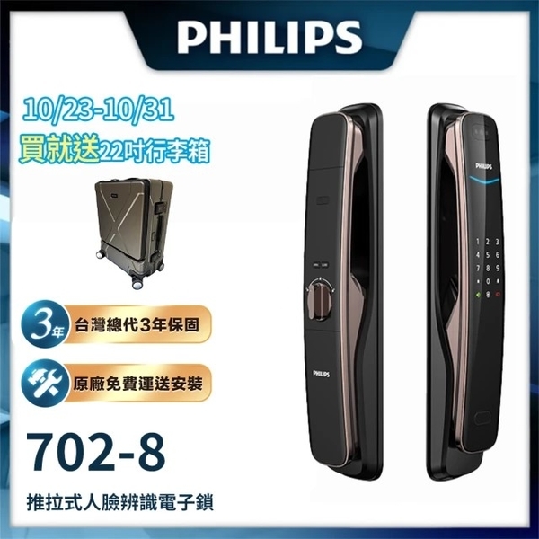 Philips 飛利浦 702-8HWS 人臉辨識五合一推拉式電子鎖